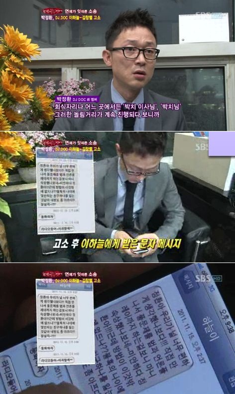 DJ DOC 전 멤버 박정환이 SBS '한밤의 TV연예'에 출연해 이하늘로부터 받은 문자메시지를 공개했다.