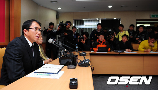 8일 오전 서울 종로구 축구회관에서 열린 조광래(57) 축구 국가대표팀 감독 전격 경질관련 기자회견에서 황보관 기술위원장이 말을 하고 있다.