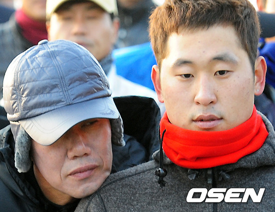 대회에 앞서 넥센 김시진 감독이 KIA 윤석민의 어깨에 턱을 괴고 포토타임을 기다리고 있다.