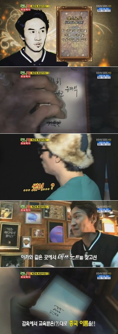 그러나 반전이 있었다. 하하는 송지효와 김종국에게 잡힐 뻔한 위기의 상황에 자신의 능력을 써서 한 시간 전으로 시간을 되돌렸고, 이에 이광수는 다시 '데쓰 노트'를 찾아 김종국의 이름을 적어 넣어 바로 아웃시켰다.