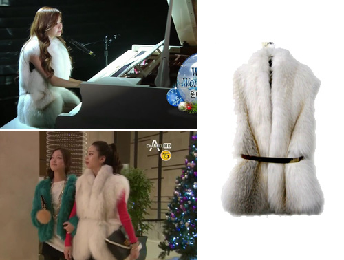 이들이 입고 나온 퍼 베스트는 미샤의 제품으로 흰 눈처럼 포근한 화이트 컬러와 민소매 스타일에 엉덩이를 덮는 기장이 특징이다.