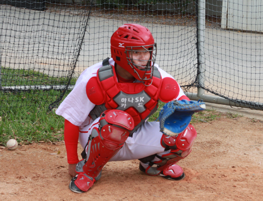 미국 플로리다 베로비치 전지훈련지에서 재활에 열중하고 있는 박경완은 28일(한국시간) 포수 보호 장구를 모두 갖춘 채 모습을 드러냈다. 작년 6월 3일 문학 KIA전에서 포수 겸 9번 타자로 선발 출장한 이후 첫 포수 마스크 착용이다.