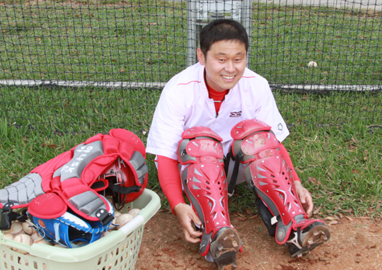 오랜만에 포수 마스크와 미트를 낀 박경완은 "8개월만에 마스크를 썼더니 감개가 무량하다"고 웃어보였다고.