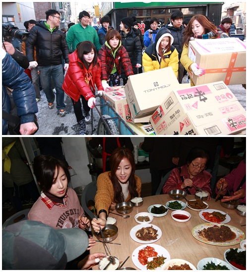 앞서 티아라는 SBS ‘인기가요’에서 트리플크라운을 달성 한 후 지난 1일 자원봉사단체 함께사는 사람들과 서울시 금천구 시흥동 일대에 거주하고 있는 독거노인을 찾아가 쌀, 라면, 내복, 화장품 등의 생필품을 전달했다.