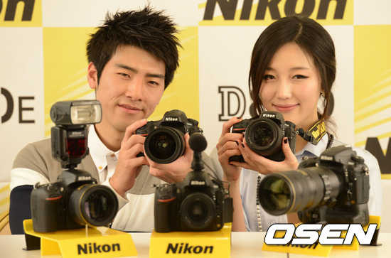 7일 오후 서울 프레스센터에서 니콘이미징코리아 D800 발표회에서 도우미들이 카메라를 선보이고 있다.
