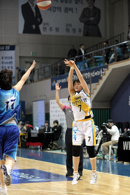 신한은행의 이연화는 3점슛 4개를 포함 24득점을 올리며 승리의 수훈갑이 됐고 김단비(20득점)와 강영숙(18득점 8리바운드)도 팀 승리에 일조했다.