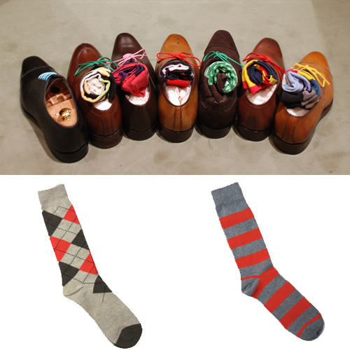 때문인지 블랙과 그레이, 화이트 등의 모노톤 컬러가 위주였던 남성 양말들이 점점 컬러풀하게 변신하고 있다. 컬러 뿐만 아니라 아가일 패턴이나 스트라이프 패턴 등으로 더욱 화려하게 변신하고 있다.