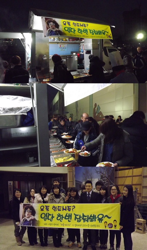 SBS 월화드라마 '샐러리맨 초한지'의 이범수가 팬들과 함께 촬영장에 밥차를 불러 추운 날씨에 고생이 많은 스태프를 응원했다.
