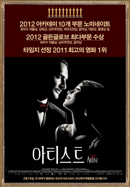 '아티스트'는 아카데미 시상식에서 작품상, 감독상, 남우주연상, 여우조연상, 각본상, 촬영상, 음악상, 미술상, 의상상, 편집상 후보로 올랐다.
