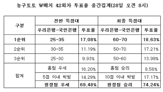 2011-2012시즌 농구토토 W매치 42회차 투표율 중간집계 결과