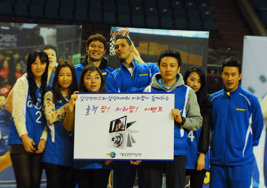 서울 삼성 썬더스 농구단(단장 이성훈)이 지난 1일 시즌 마지막 홈경기 종료 후 '출첵팝! 미러팝!' 이벤트에 선정된 팬들을 대상으로 농구계 최초의 '개근상 시상식'을 열었다.