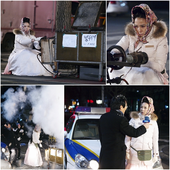 늦은 밤 어느 길거리, 선녀복 위에 패딩을 입고, 화려한 보자기로 선녀 머리를 감싼 심혜진의 모습이 눈길을 끈다. 어디서 구했는지 모를 옛날 뻥튀기 기계를 담담히 돌리고 있는 모습이 압권. 특히 날개옷을 잃고 지상세계에 머물게 된 선녀 왕모가 보자기와 패딩으로 선녀임을 감춘 채 뻥튀기를 팔고 있는 모습은 어딘지 모르게 안쓰러움을 불러일으키는 한편, 뻥튀기 장사를 하게 된 왕모의 사연에 누리꾼들의 궁금증이 모아지고 있다.