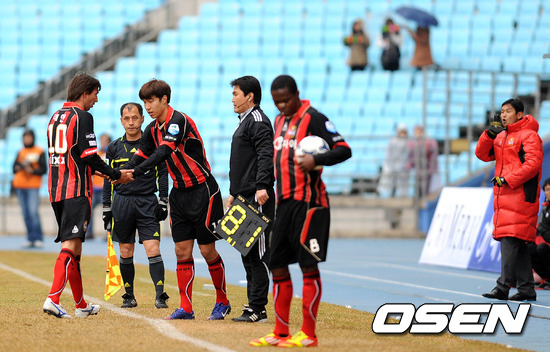 지난 4일 경기서 데얀(왼쪽)이 교체돼 나오는 모습.