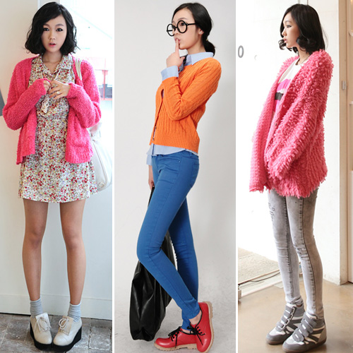 - 비비드 카디건, 피부가 어두운 편이라면 붉게 흰 편이라면 푸르게 선택해야 매력이 UP!