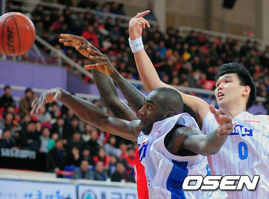 [OSEN=울산, 정송이 인턴기자]11일 오후 울산 동천실내체육관서 열린 2011-2012 KB국민카드 프로농구 6강 플레이오프 3차전 울산 모비스와 전주 KCC의 경기 4쿼터 KCC 하승진과 왓킨스가 리바운드 볼을 잡기위해 손을 뻗었지만 놓치고 있다.
