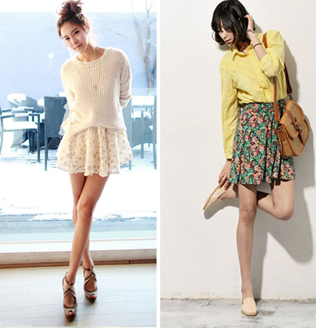플레어스커트 역시 로맨틱 룩을 완성하기에 좋다. 플레어스커트는 밑단이 걸을 때마다 하늘거리기 때문에 그 자체로도 러블리한 분위기를 풍기기에 충분하다. 때문에 나머지 아이템은 심플하게 매치해야 과하지 않은 스타일링이 된다.