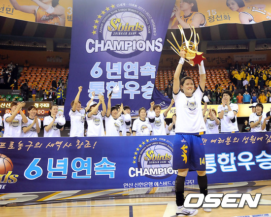 경기종료 후 신한은행 강영숙이 우승 트로피를 들고 환호하고 있다./ soul1014@osen.co.kr