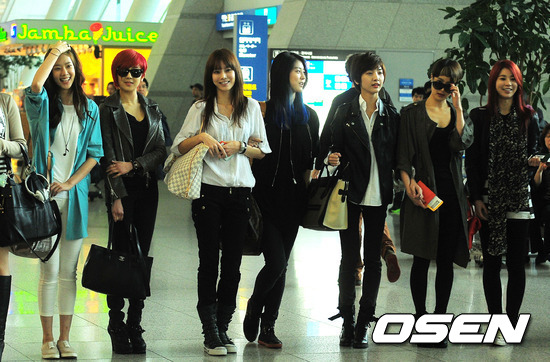 10일 오전 인천공항에서 7인조 걸 그룹이 출국 수속을 밟으러 가고 있다.