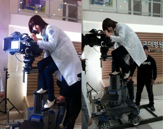 사진을 본 네티즌들은 "직접 촬영까지? 귀엽다", "의사 가운이 잘 어울린다", "엇, 조심하세요" 등의 반응을 보였다.
