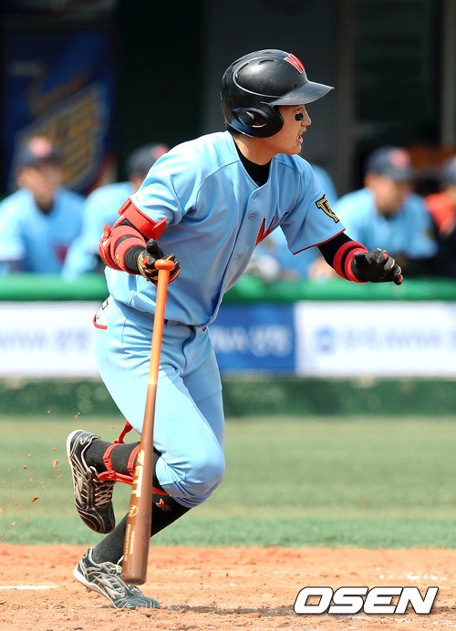 15일 오전 서울 목동야구장에서 열린 '2012 고교야구 주말리그' 장충고와 휘문고의 경기, 3회말 2사 휘문고 문성현이 내야안타를 치고 1루로 달리고 있다.