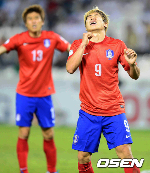 슈팅이 골 옆그물을 때리자 이근호가 아쉬워 하고 있다. /baik@osen.co.kr