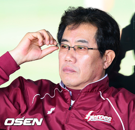 17일 오후 목동구장에서 '2012 팔도 프로야구' 넥센 히어로즈와 롯데 자이언츠의 경기가 열릴 예정인 가운데 양 팀 훈련시간에 넥센 김시진 감독이 덕아웃에서 선수들의 훈련상황을 유심히 관찰하고 있다.