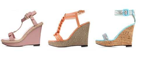 올해 플랫폼 웨지힐 슈즈의 트렌드는 독특한 컬러, 프린트 무늬, 그리고 다양한 소재의 믹스매치 된 힐 라인, 그리고 발목까지 스트랩으로 잡아 주어 발목을 더욱 가늘고 길게 보이게 하는 것이다.