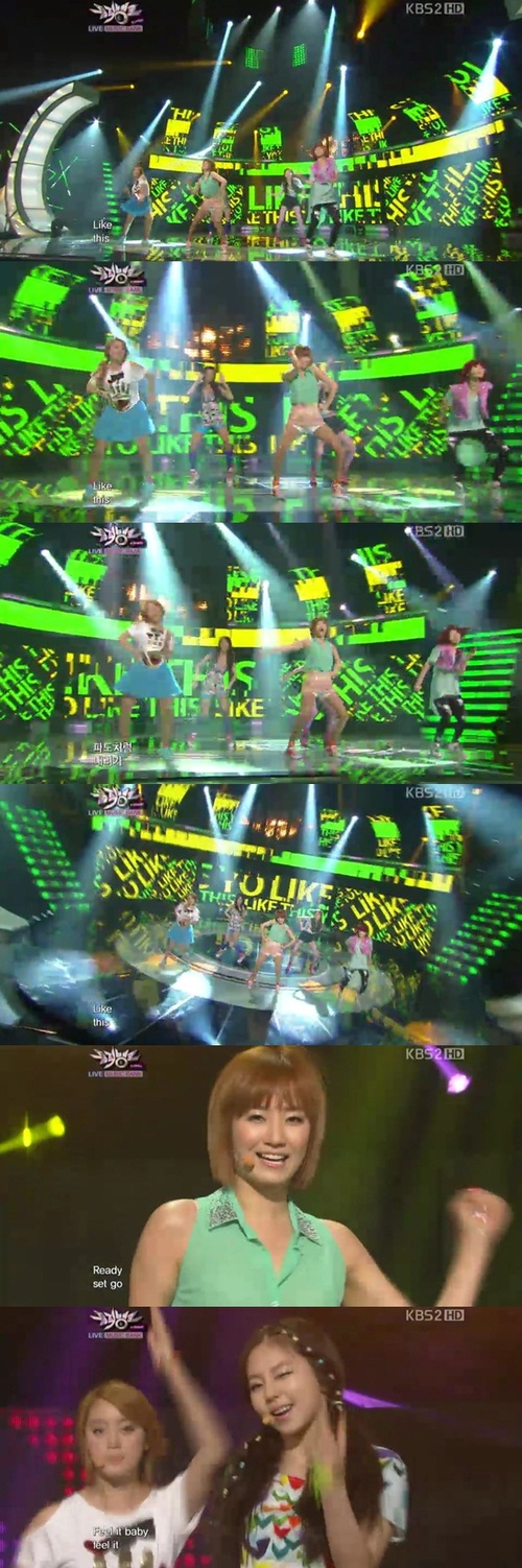 원더걸스는 22일 오후 방송된 KBS 2TV '뮤직뱅크'에 출연해 타이틀곡 '라이크 디스(Like this)'를 열창했다.