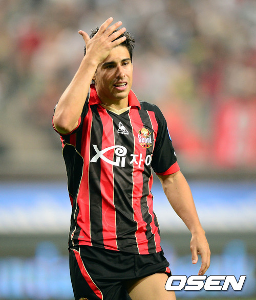 24일 오후 서울월드컵경기장에서 열린 '2012 K-리그' 17라운드 FC 서울과 울산 현대의 경기 후반 서울 몰리나가 결정적인 슈팅 찬스를 놓치고 아쉬워 하고 있다.
