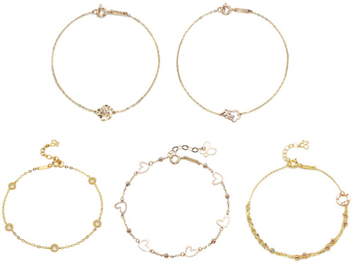 미니골드가 선보인 골드 팔찌 5종은 여성스러운 메인 장식 하나가 포인트 된 팔찌 2개와 줄 전체에 디테일이 살아있는 3개로 구성됐다. 각각의 이름은 골든로즈, 체리블라썸, 아이스볼, 말레즈, 핑키볼이다.