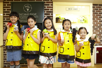 ‘스킨푸드 뷰티살롱’에 참가한 어린이들은 스킨푸드 유니폼을 입고 뷰티 컨설턴트가 돼 피부를 건강하고 아름답게 가꾸는 푸드 화장품에 대해 배우고 체험하며, 밝은 미소, 표정 연습 등 서비스 매너를 배운다.