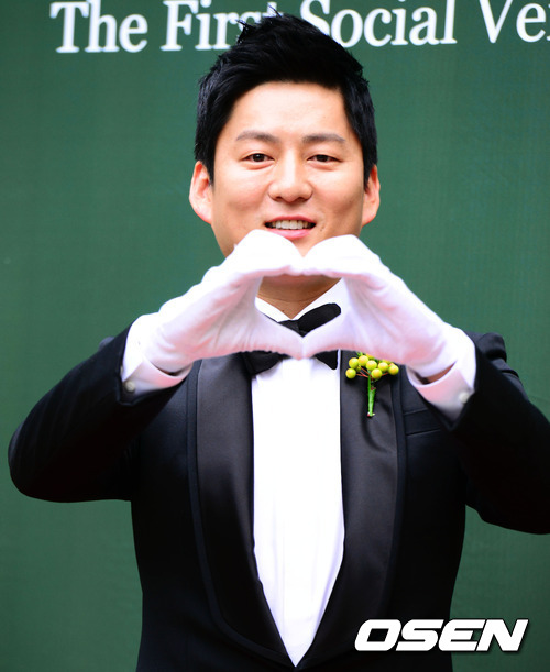 새신랑 강레오가 포토타임을 갖고 있다.