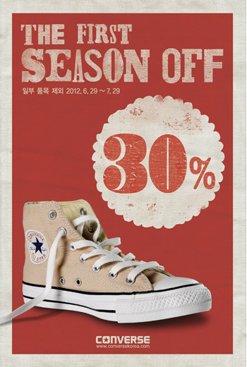 브랜드 컨버스 코리아가 29일부터 7월 29일까지 1개월 간 2012년 봄-여름 상품을 대상으로 ‘The First Season Off 30%’ 행사를 진행한다.