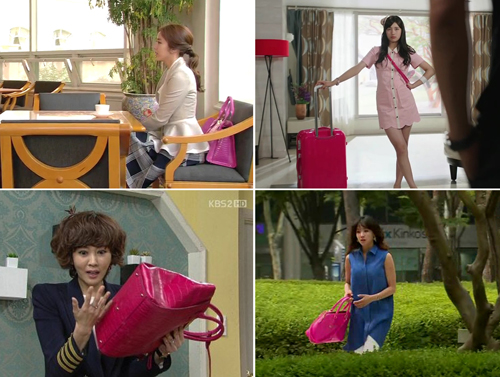 KBS 주말드라마 ‘넝쿨째 굴러온 당신’의 완판녀 김남주와 KBS 월화드라마 ‘빅’의 수지, tvN ‘노란복수초’의 이유리 또한 핫 핑크 컬러 핸드백으로 스타일에 포인트를 주어 눈에 띈다.