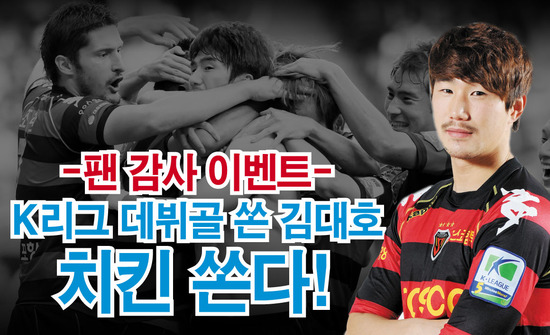 오는 7월 1일 수원과의 홈 경기에는 김대호가 치킨 20마리를 팬들에게 선물한다. 작은 선물을 통해 K리그 데뷔골의 기쁨을 팬들과 함께 나누고자 함이다. 포항스틸러스 유스 시스템 출신(포철공고) 김대호는 6월 17일 서울과의 홈 경기에서 2010년 입단 후 3시즌 만에 'K리그 데뷔골'을 쐈다. 포항은 서울과의 경기에서 김대호의 결승골에 힘입어 1-0 승리를 거뒀다.