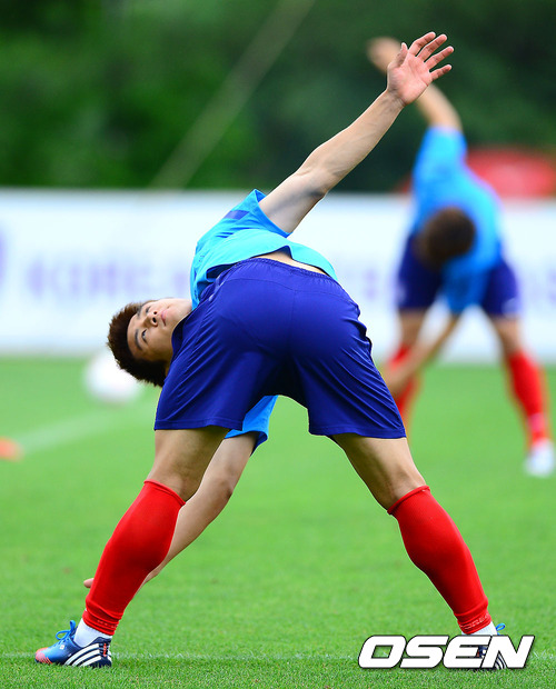 3일 오후 경기도 파주 NFC에서 2012 런던올림픽 대표팀의 공개 훈련에서 구자철이 스트레칭을 하고 있다