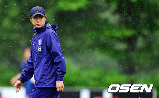 홍명보 감독,'비 맞으며'