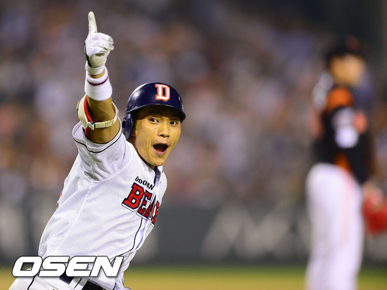 9회말 2사 1,2루 두산 이종욱이 끝내기 안타를 날리고 환호하고 있다. /soul1014@osen.co.kr