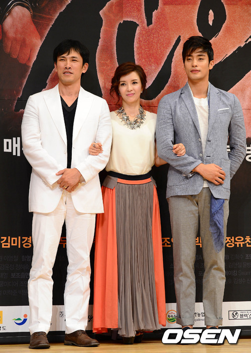 9일 오후 서울 목동 SBS 사옥에서 진행된 SBS 새 월화 드라마 '신의' (연출 김종학, 신용휘) 제작발표회에서 배우 유오성, 신은정, 성훈이 포토타임을 갖고 있다.