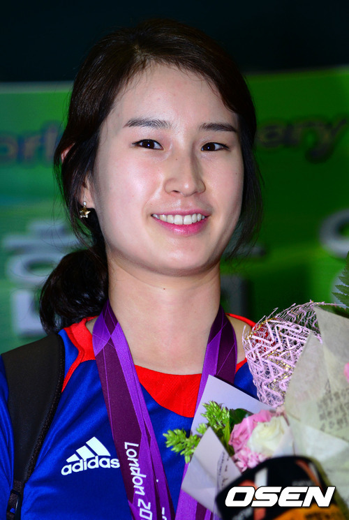 한국 양궁 국가 대표팀이 13일 오후 인천공항을 통해 입국했다. 금메달 3개를 수확해 온 양궁 대표팀을 위해 수 많은 팬들이 공항을 찾아 그들의 금의환향을 반겨 주었다. 선수들은 밝은 미소로 팬들을 맞았다. 그 중 가장 빛을 발한 것은 2관왕 기보배(24, 광주시청)였다.