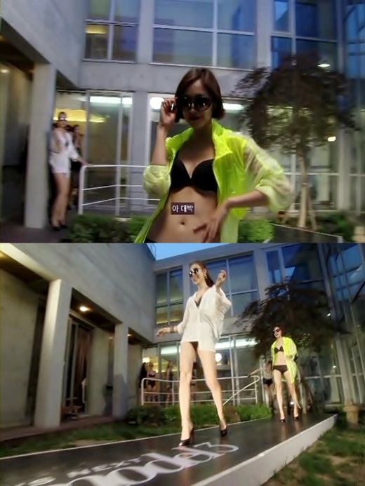 도전자들이 평소에도 워킹 연습을 할 수 있도록 합숙소에 마련되어 있던 미니 런웨이가 그 무대. 자유롭게 자신들의 비키니 수영복과 다양한 소품으로 한껏 멋을 낸 도전자들은, ‘우월한 유전자’답게 완벽한 바디라인을 자랑하며 저마다 파격적인 섹시미를 한껏 뽐내 눈길을 끌고 있다. 특히 도전자들은 한층 안정적인 워킹과 도도하고 당당한 표정과 포즈 등으로 그동안 미션과 트레이닝을 거치며 한껏 성장한 모습을 그대로 보여주어 감탄을 자아내기도.