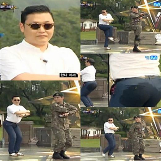 공개된 사진은 지난 24일 오후 방송된 엠넷 '슈퍼스타 K4'의 한 장면으로, 사진 속 싸이는 한 군인 참가자와 함께 씨스타의 '나혼자' 안무를 선보이고 있다. 네이비색 바지를 입은 싸이의 엉덩이는 마치 땀에 젖은 듯 물기가 흥건한 모습으로 눈길을 끌었고, 방송 직후 시청자들은 싸이는 엉덩이에서도 땀이 난다며 '엉땀 싸이'라는 별칭을 붙여줬다.