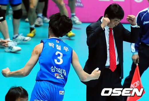 신치용 감독은 그 한 마디로 박철우(27)에 대한 기대감과 응원을 간결하게 정리했다. 삼성화재는 25일 수원실내체육관에서 열린 2012 수원컵 프로배구대회 준결승전에서 대한항공을 세트스코어 3-1(25-19 32-30 22-25 25-17)으로 물리치고 결승전 진출을 확정지었다.