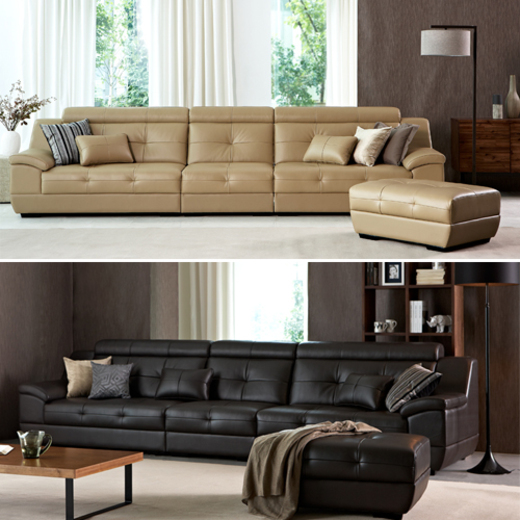 초코 브라운, 모카 브라운 두 가지 컬러 타입의 이 제품은 ‘3인 소파와 가죽쿠션 1개’, ‘4인소파와 대형스툴+가죽쿠션 2개’, ‘6인소파와 대형스툴+가죽쿠션 2개’로 구성되어 있다. 가격은 3인 70만원대, 4인 90만원대, 6인 130만원대이다.