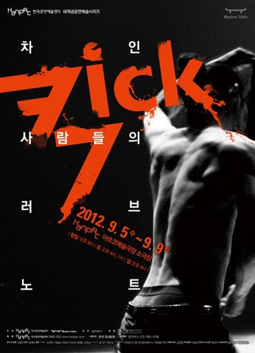 공연 Kick(부제: 차인 사람들의 러브노트)은 9월 5일부터 9일까지 Hanpac 아르코예술극장 소극장에서 관객과 만난다. 티켓은 균일석 2만 원.
