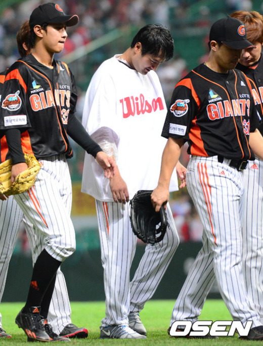 29일 오후 인천 문학구장에서 열린 '2012 팔도 프로야구' SK 와이번스와 롯데 자이언츠의 경기 종료 후 이정민이 그라운드랄 빠져나가고 있다.