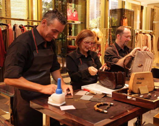 구찌가 31일 서울 청담동 플래그십 스토어에서 이탈리아 구찌 장인들이 제품을 만드는 모습을 직접 선보이는 아티잔코너(Artisan Corner)를 선보인다.