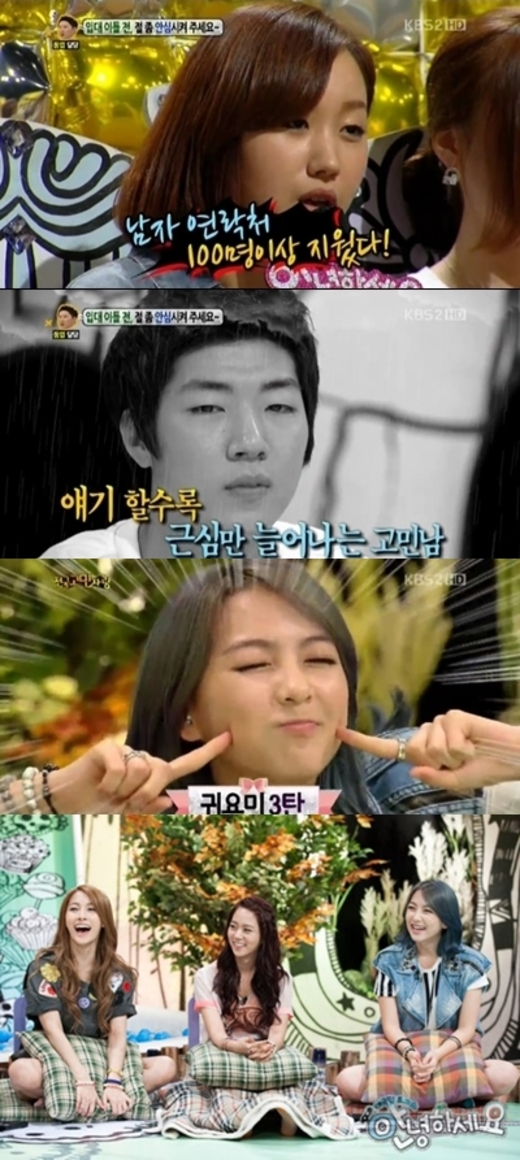 이날 '안녕하세요'에는 걸그룹 카라의 박규리, 한승연, 강지영이 출연해 각각의 고민을 가지고 나온 사연자들과 함께하며 시청자들의 웃음과 공감을 자아냈다.