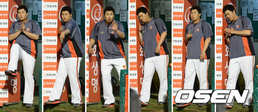 9회초 한화 류현진이 삼성 더그아웃을 바라보며 장난스런 동작을 취하고 있다./jpnews@osen.co.kr