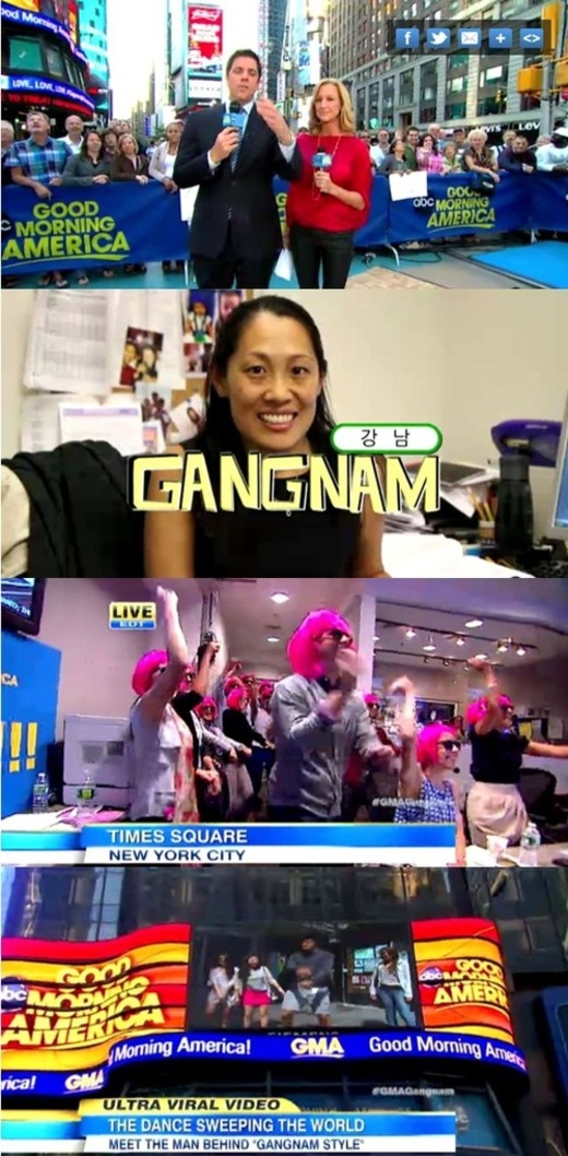 미국 주요 언론 ABC가 아침 방송부터 싸이의 곡 '강남스타일'의 말춤을 떼로 추는 장면을 실시간으로 방송했다.